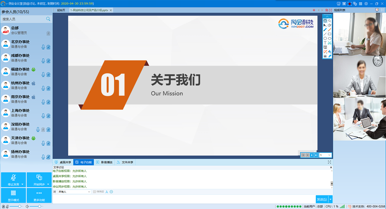 網(wǎng)會(huì)科技是中國領(lǐng)先的遠(yuǎn)程視頻會(huì)議軟件以及視頻會(huì)議系統(tǒng)、網(wǎng)絡(luò)視頻會(huì)議全面應(yīng)用解決方案的供應(yīng)商.產(chǎn)品涵蓋軟硬件視頻會(huì)議系統(tǒng)、視頻智能錄播系統(tǒng)等 請(qǐng)撥400-004-0268。